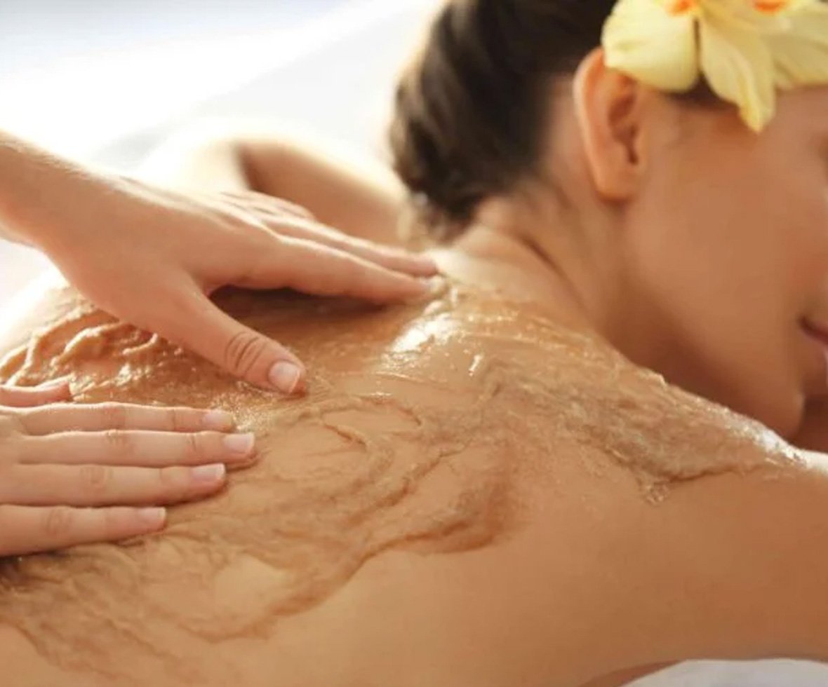 These naturally exfoliating fruits are massaged over your body to polish the skin to silky perfection. A super-hydrating body cream is applied after the scrub, leaving you in tropical bliss.